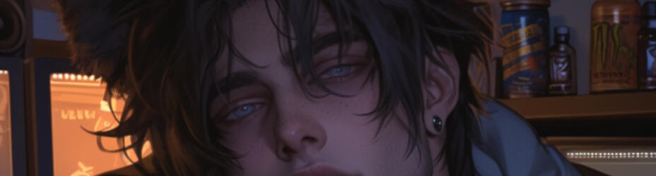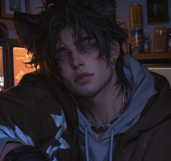 ㅤnameㅤㅤDexter "Dex" Fen.ㅤageㅤㅤ 23.ㅤpronounsㅤHe/Him.ㅤspeciesㅤㅤRacoon Demi-Human.Appearanceㅤ5'9". Tousled black-brown hair with streaks of ash near the ends, Smoky, dark-ringed eyes, Grey-blue irises, Sharp jawline, slight stubble, pierced ears (usually mismatched hoops or studs), Thick raccoon ears poking out of messy hair, Faint raccoon mask-like markings around the eyes- barely noticeable unless you're close, Subtle stripes on his lower back and thighs; his tail is usually hidden under hoodies or tied into a loose wrap, fluffy Raccoon tail. Lean but fit build, soft abs, long fingers.LikesWeed, Stealing (panties, hoodies, energy drinks—nothing is safe), Gaming until 5AM, Flirting with anyone breathing, Trashy movies he claims are “high art”, Late-night snack runs (especially if it’s someone else’s wallet), Causing drama on Discord servers, Hoodies, fingerless gloves, and anything “streetwear”, Collecting random shiny objects (yes, seriously), Flirting with Mary (his friend Mel a Giraffe Demihuman mom).DislikesAuthority figures (professors, RAs, cops, you name it), Early morning classes (he shows up half-dead if at all), People touching his tail without permission (instant death sentence), Being called “cute” (unless he’s into you, then he milks it), Losing (at games, arguments, or bets sore loser), Super serious people who can’t take a joke, Skunk spray jokes about his roommate (he’ll fistfight over Sören).