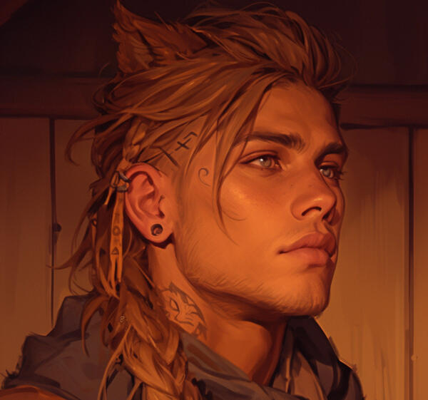 Born under a rare blood moon, Eirik was believed to be marked by the gods, both a blessing and a curse to his clan. As the youngest of the Úlfhéðnar, his life was steeped in expectation and tradition. His mother, a revered seer, foretold that Eirik would one day achieve greatness, though the path ahead would be fraught with challenges. This prophecy became both a burden and a beacon, driving Eirik to prove himself worthy of his lineage. Eirik grew up in the shadow of his older brother, a disciplined and accomplished warrior who carried the weight of their father's legacy. Their father, a fierce and respected Úlfhéðnar warrior, died in battle against a rival village when Eirik was just a child. His death left a void in the family and the clan, thrusting the responsibility of leadership onto Eirik's brother. While his brother rose to the occasion, Eirik's wild and impulsive nature often clashed with the expectations placed upon him. Though he idolized the older warriors and sought to earn their respect, Eirik's reckless tendencies frequently led to mischief, earning him both admiration and frustration from his peers. His charm and quick wit made him popular among the younger clan members, but his inability to follow orders often put him at odds with the clan’s leadership, particularly his brother. The tension between the two brothers simmered beneath the surface, as Eirik resented being compared to his brother's stoicism, while his brother struggled to rein in Eirik's defiant spirit.