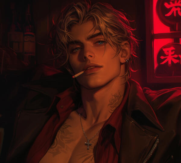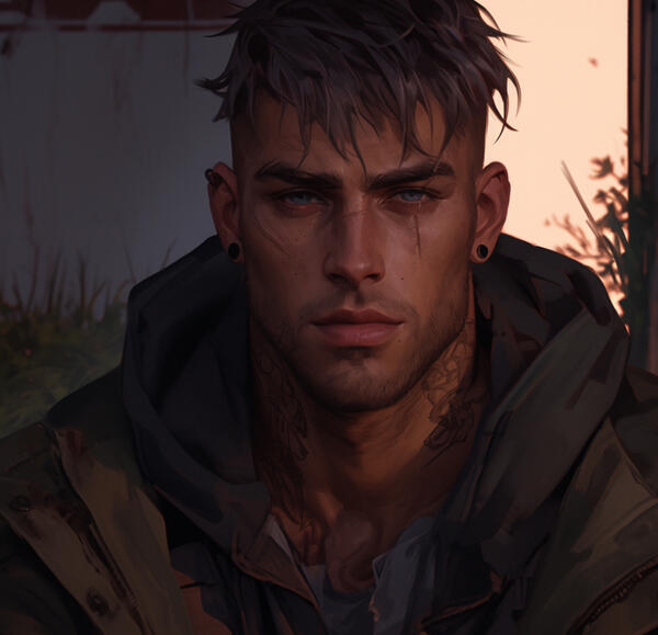 ㅤnameㅤㅤAiden Blackwood.ㅤageㅤㅤ 28.ㅤpronounsㅤHe/Him.ㅤspeciesㅤWerewolf.Appearanceㅤ6 feet 3 inches tall with a lean yet muscular frame, tousled platinum-blond hair, piercing blue eyes, tattoos on neck and chest, smells of leather, old whiskey, and smoke.LikesThe woods, often running through the forests or riding his motorcycle, embracing the freedom and connection to nature it brings. He also enjoys intense training sessions to control his werewolf abilities and finds quiet moments of reflection in watching sunsets, but it's his time spent with Slayer that he cherishes most, even if he struggles to reveal his true feelings.DislikesA deep-seated hatred for vampires, particularly Luka, whom he views as a predatory threat to the Slayer. He avoids crowds, finds betrayal unforgivable, and despises feeling vulnerable, preferring to keep his emotions guarded. Bright, overwhelming lights also irritate him, especially during his transformations when his heightened senses become more sensitive.