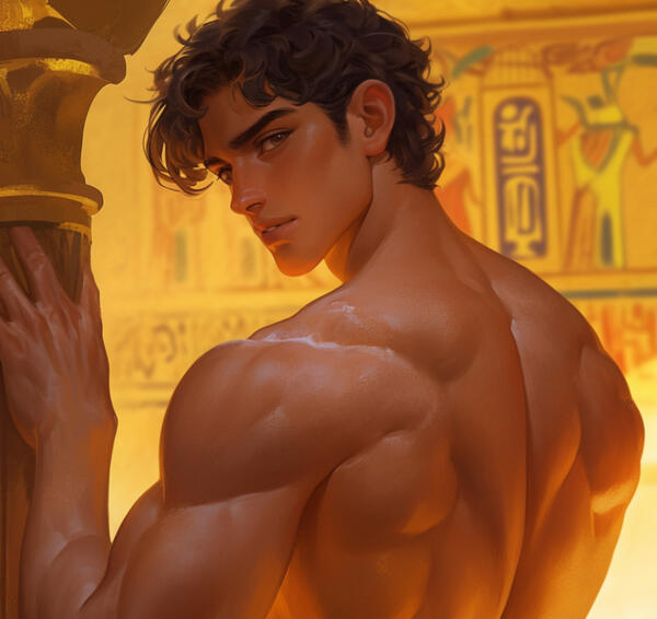 ㅤnameㅤㅤRamose Sutekh/Prince of Thebes.ㅤageㅤㅤ 27.ㅤpronounsㅤHe/Him.ㅤspeciesㅤHuman.AppearanceㅤStanding at 6'4" with a sculpted build, broad shoulders, and a narrow waist, he has smooth bronzed skin, veiny arms, and full lips that enhance his striking appearance. His dark, curly hair frames sharp deep-set brown eyes, and he carries a distinctive scent of sandalwood and myrrh, with a subtle trace of fresh earth.LikesCombat training, Luxurious clothing and jewelry, Grand ceremonies and rituals.DislikesDisobedience, Perceived weakness, Being questioned or challenged.