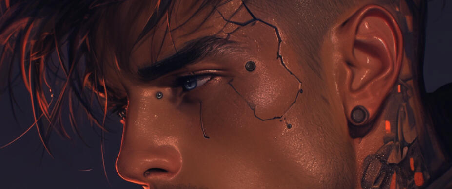 ㅤnameㅤㅤKael Vyrnex.ㅤageㅤㅤ 32.ㅤpronounsㅤHe/Him.ㅤspeciesㅤHuman.Appearanceㅤstands at 6'3", Black, messy, undercut. Piercing blue with cyber-enhanced irises. Lean and muscular, with cybernetic augmentations on his arms and torso.LikesTechnology, Freedom, Fine Liquor, Challenges, Neon Nights.DislikesCorporations, Betrayal, Weakness, Blind Optimism.